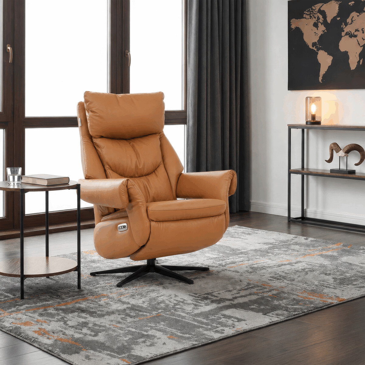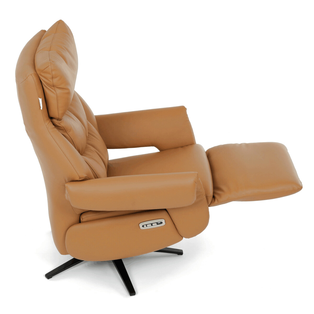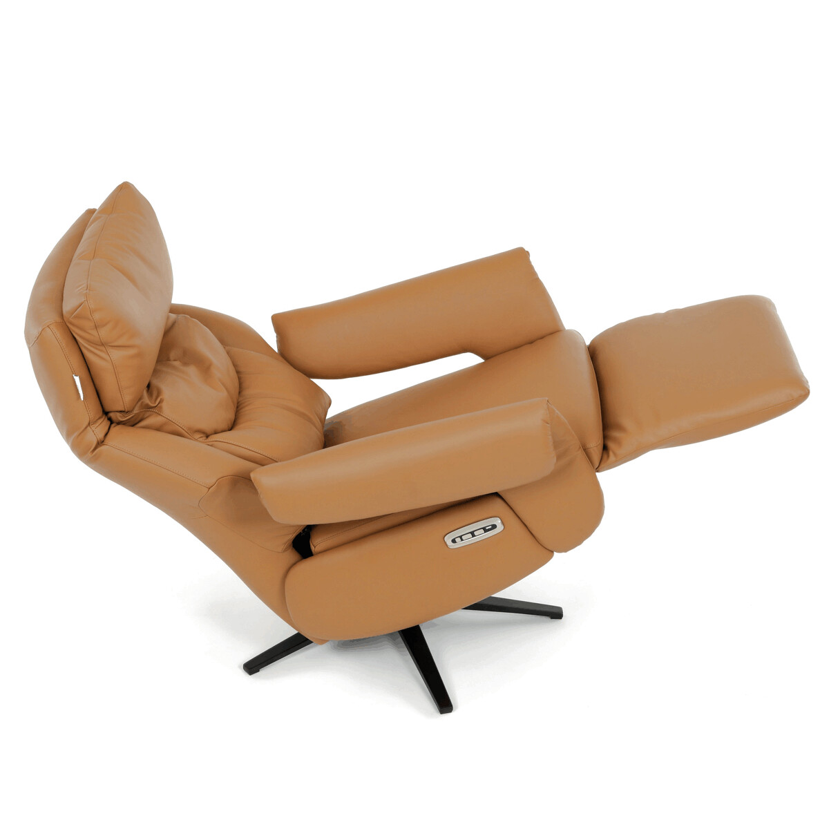 Polohovacie kreslo s elektrickým ovládaním a dvoma motormi ponúka komfortnú relaxáciu s možnosťou presného nastavenia polohy operadla a podnožky. Čalúnenie z pravej béžovej kože dodáva kreslu príjemný vzhľad a jednoduchú údržbu, zatiaľ čo pevná kovová podnož zabezpečuje stabilitu a dlhú životnosť. Kreslo je vybavené zabudovaným dotykovým ovládaním umiestneným na podrúčkach, ktoré umožňuje intuitívne a pohodlné nastavenie polohy. Vďaka otočnej základni sa kreslo ľahko natočí do požadovaného smeru, čo zvyšuje jeho funkčnosť v interiéri. Ergonomicky tvarované operadlo s výrazným polstrovaním podporuje správne držanie tela a prispieva k celkovému pohodliu pri sedení.