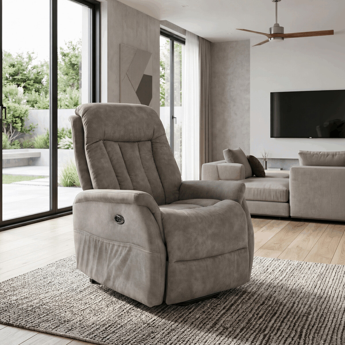 Polohovacie kreslo s elektrickým ovládaním a jedným motorom ponúka komfortnú relaxáciu s možnosťou presného nastavenia polohy. Poťah je z príjemnej sivej látky, ktorá zabezpečuje mäkký dotyk a jednoduchú údržbu. Kreslo disponuje výklopnou funkciou pre ľahké vstávanie a otočnou základňou, ktorá umožňuje pohodlný pohyb bez nutnosti vstávania. Pevná kovová podnož zaručuje stabilitu a dlhú životnosť, zatiaľ čo polstrované podrúčky prispievajú k celkovému pohodliu. Rozmery a nosnosť sú navrhnuté tak, aby vyhovovali širokému spektru používateľov.