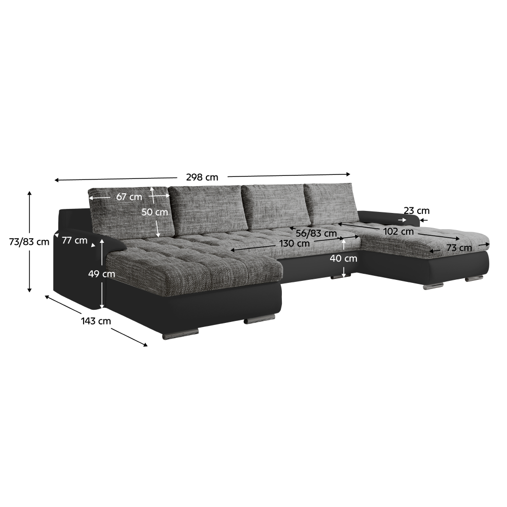 Rozmery (ŠxHxV): 298x143x73/83 cm
