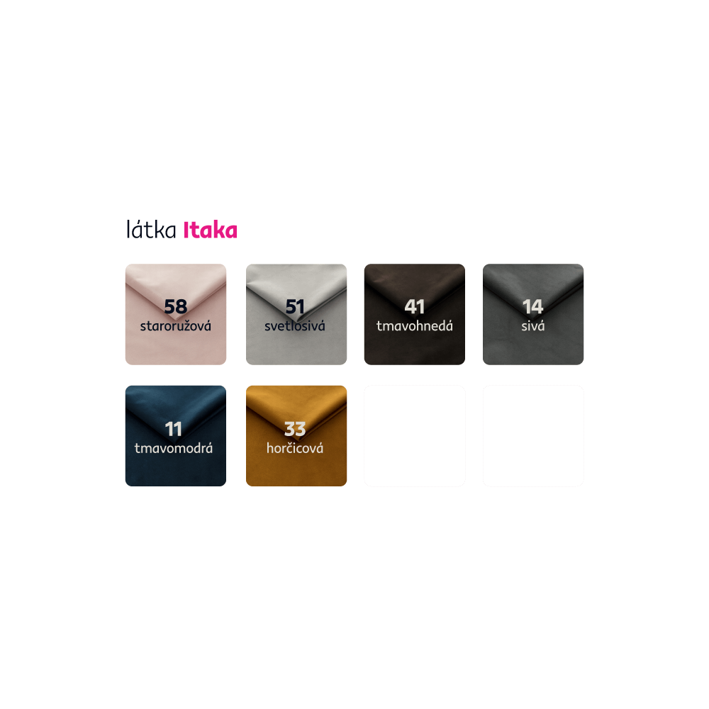 Možnosť objednania v 6 farebných prevedeniach látky Itaka v cene 849 Eur. Pri individuálnej objednávke je potrebné zaplatiť 20% zálohu z danej sumy. Po uhradení zálohy bude Vaša požiadavka zadaná do výroby. Doba dodania 6-8 týždňov.