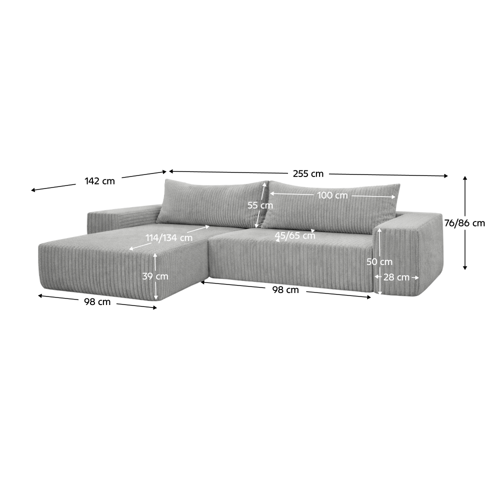 Rozmery (ŠxHxV): 255x142x76/86 cm