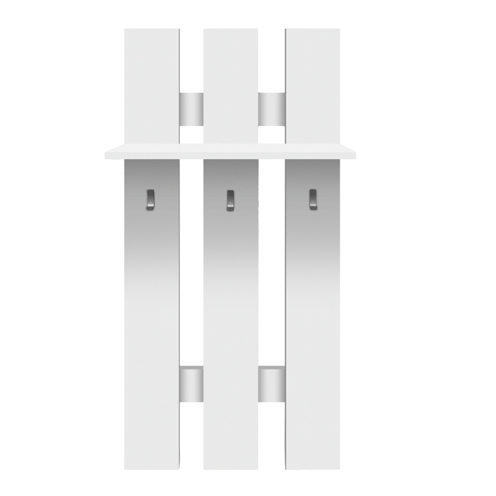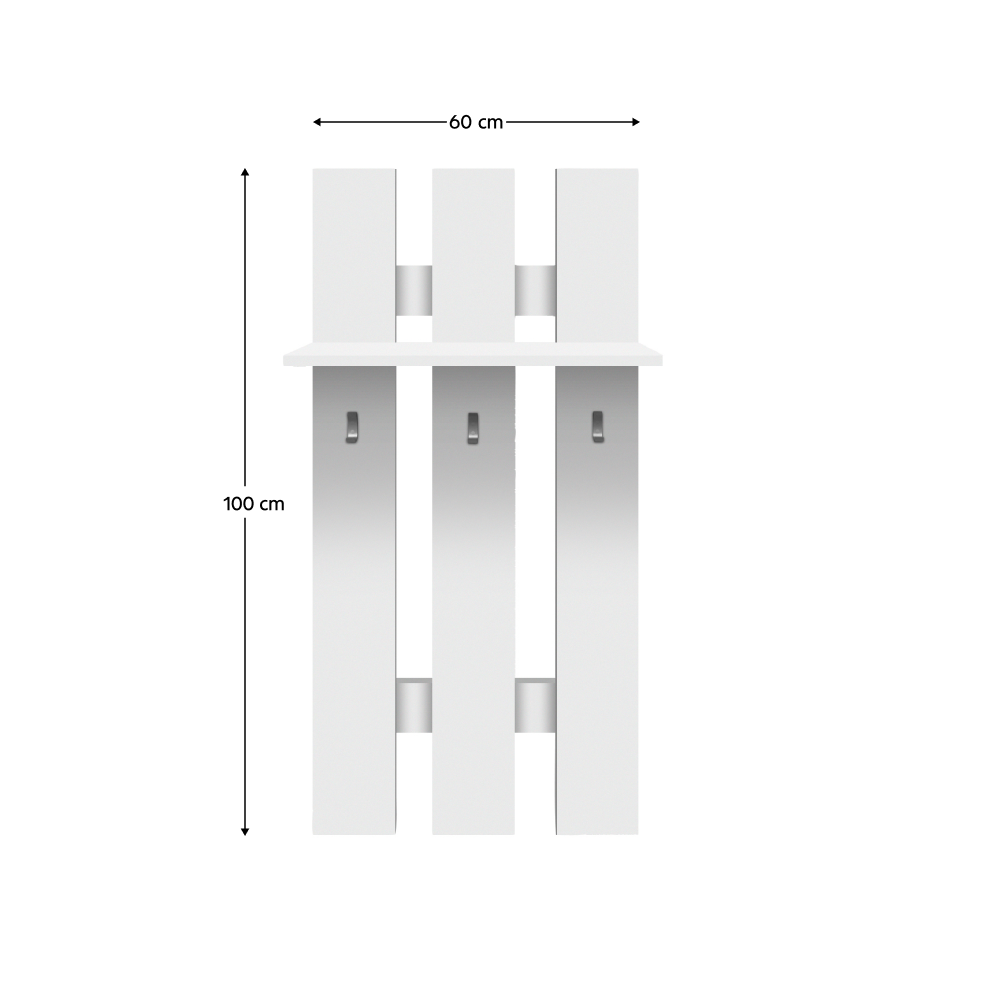 Vešiak 60 TOPTY TYP 39 Materiál: DTD laminovaná Farba: biela Rozmery (ŠxHxV): 60x23x100 cm Nosnosť police: 3 kg Tri vešiaky Polica Dodávané v demonte.