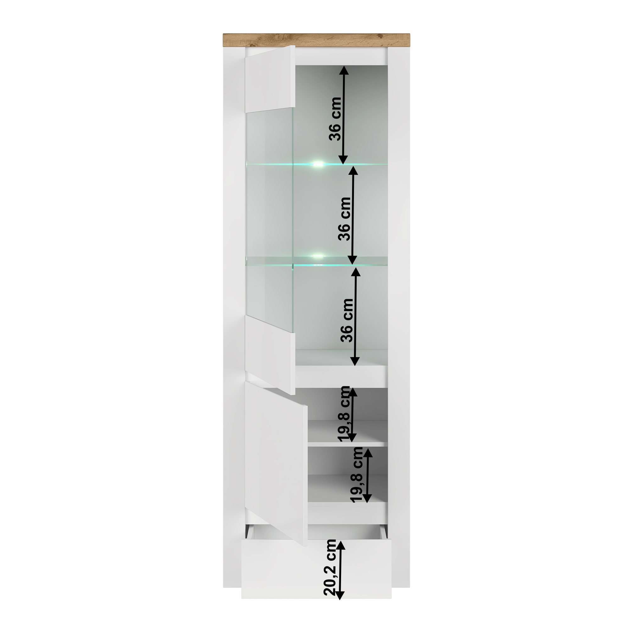 Výška spodných políc: 19,8 cm