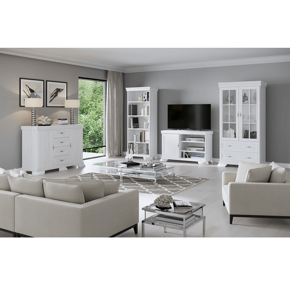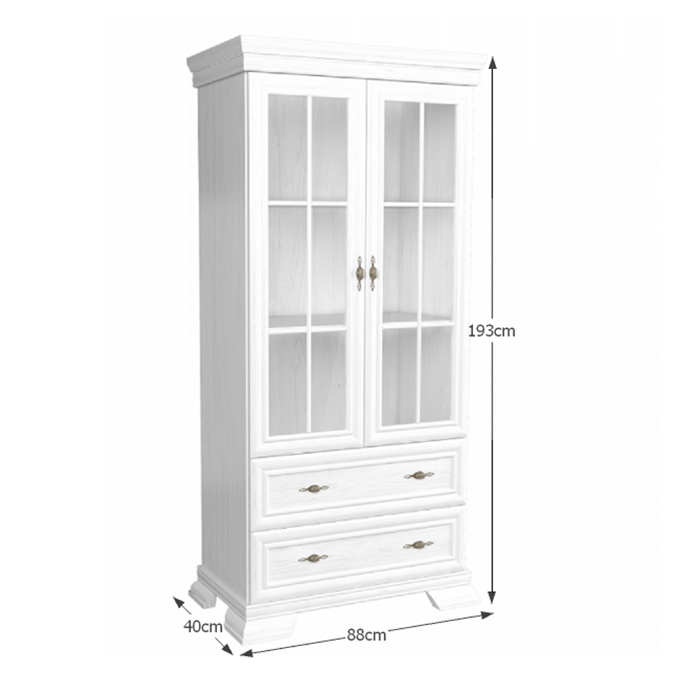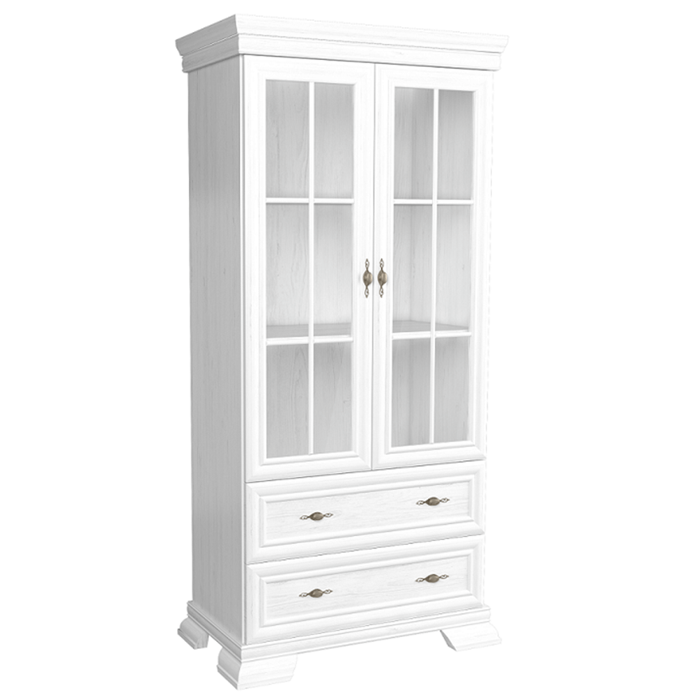 Vitrína KRW2 KORA. Farebné prevedenie sosna andersen. Materiál laminovaná DTD, MDF, kov, sklo.