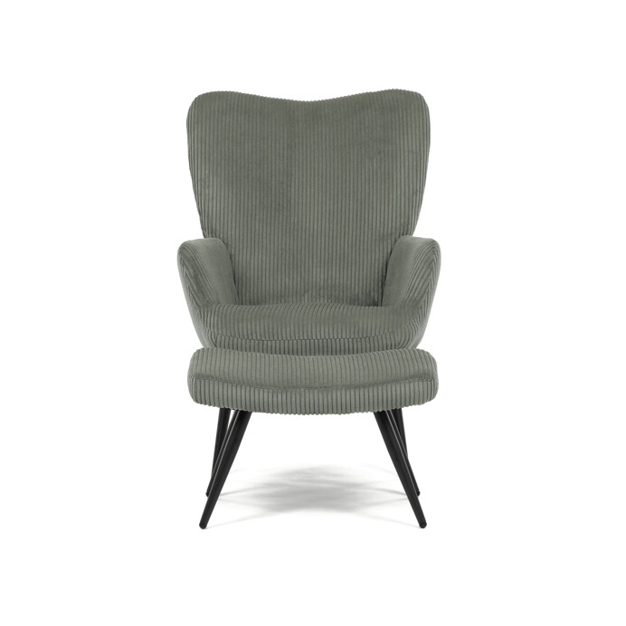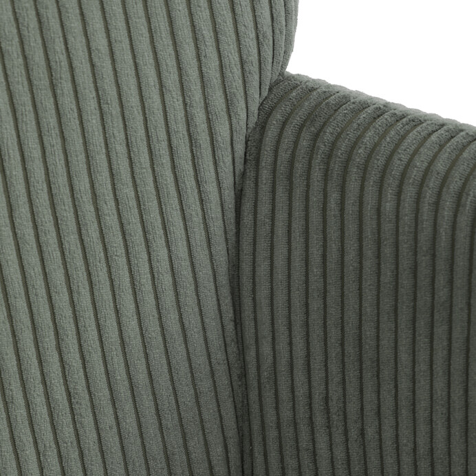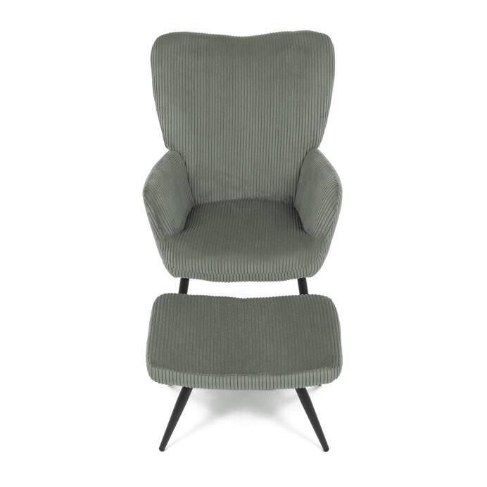 Relaxačné kreslo s podnožkou v zelenej manšestri ponúka pohodlné sedenie s mäkkým, príjemným poťahom, ktorý zvýrazňuje štruktúru manšestru. Pevné čierne kovové nohy zabezpečujú stabilitu a dlhú životnosť, zatiaľ čo integrované podrúčky prispievajú k pohodliu pri oddychu. Kreslo nie je otočné ani rozkladacie, no vďaka pridanému taburetu umožňuje pohodlné oprenie nôh a relaxáciu. Dizajn kombinuje klasický tvar s moderným materiálom, čo ho robí vhodným doplnkom do obývacích izieb aj relaxačných zón. Celková konštrukcia je navrhnutá tak, aby poskytovala komfortné sedenie s dôrazom na pevnosť a stabilitu.