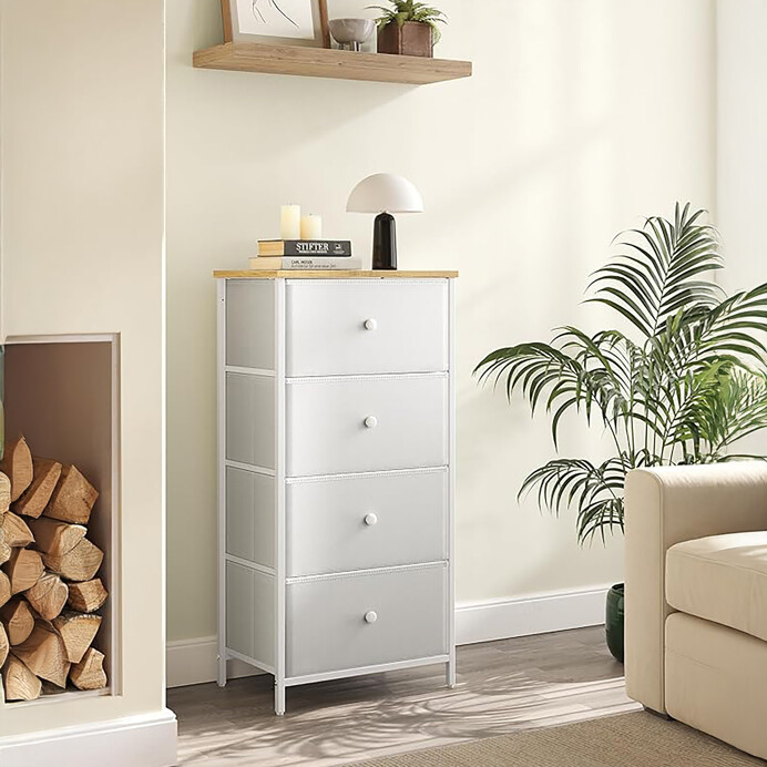 Komoda AUK-E1031 WT značky Autronic ponúka praktické riešenie úložného priestoru v kompaktnom prevedení s rozmermi 45x30x92 cm. Je vyrobená z MDF dosiek s matnou povrchovou úpravou v dekore dub, ktorý dodáva nábytku prírodný vzhľad a jednoduchú údržbu. Stabilná kovová podnož zabezpečuje pevnosť a dlhú životnosť, zatiaľ čo štyri látkové zásuvky z netkanej textílie poskytujú ľahký a flexibilný úložný priestor vhodný na odkladanie drobností aj oblečenia. Komoda je navyše vybavená rozkladacím mechanizmom, ktorý umožňuje jednoduché rozšírenie úložnej kapacity podľa potreby. Vďaka svojmu jednoduchému dizajnu a neutrálnym farbám sa hodí do rôznych interiérov, kde oceníte kombináciu funkčnosti a decentného štýlu.