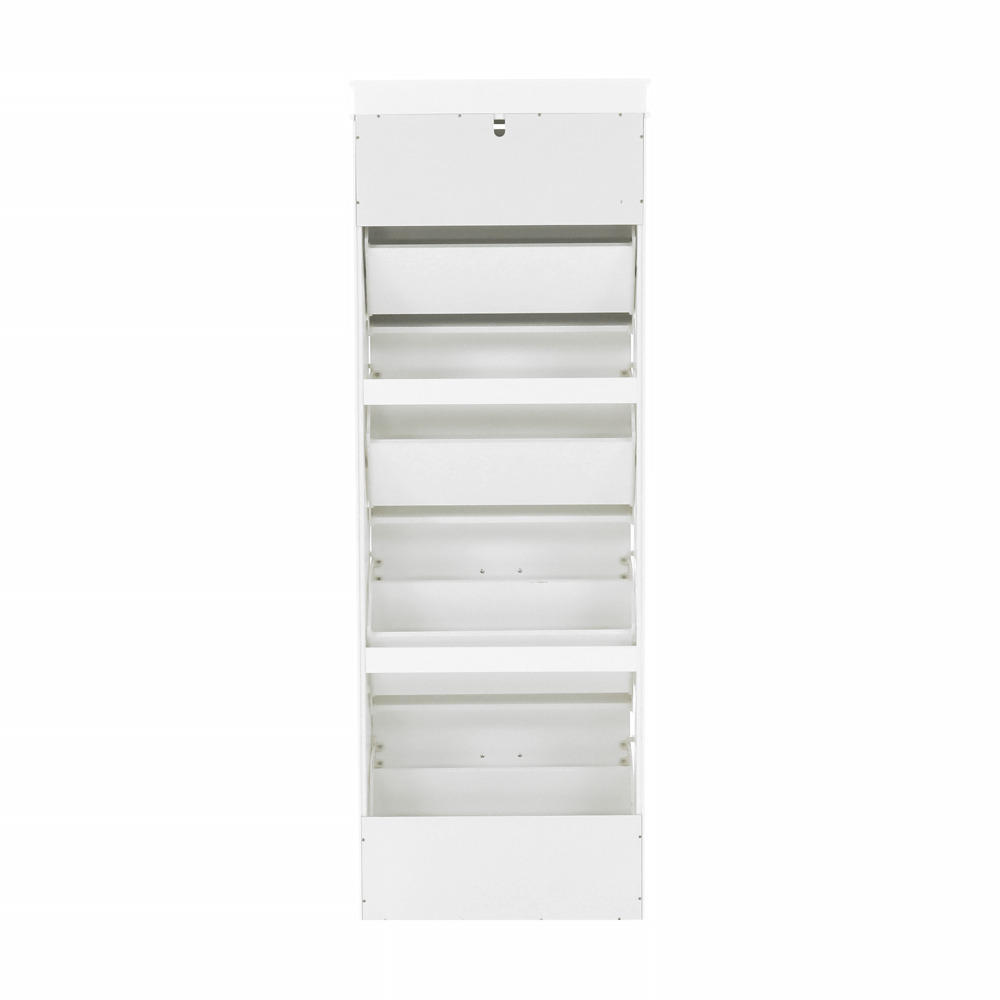 Farba: biela Materiál: MDF/drevotrieska Rozmery (ŠxHxV): 53,5x24x152 cm 4-radový Výklopný Dodávané v demonte.