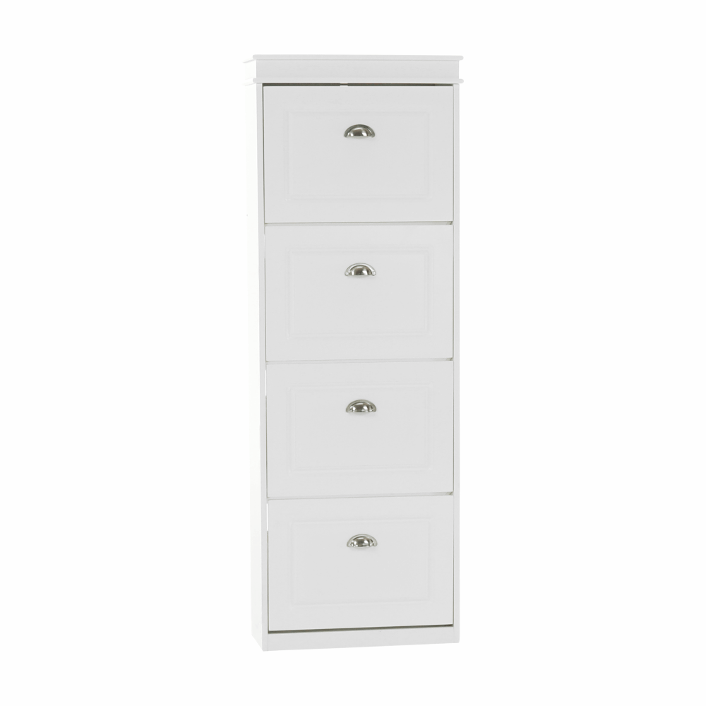 Farba: biela Materiál: MDF/drevotrieska Rozmery (ŠxHxV): 53,5x24x152 cm 4-radový Výklopný Dodávané v demont...zobraziť celý popis produktu