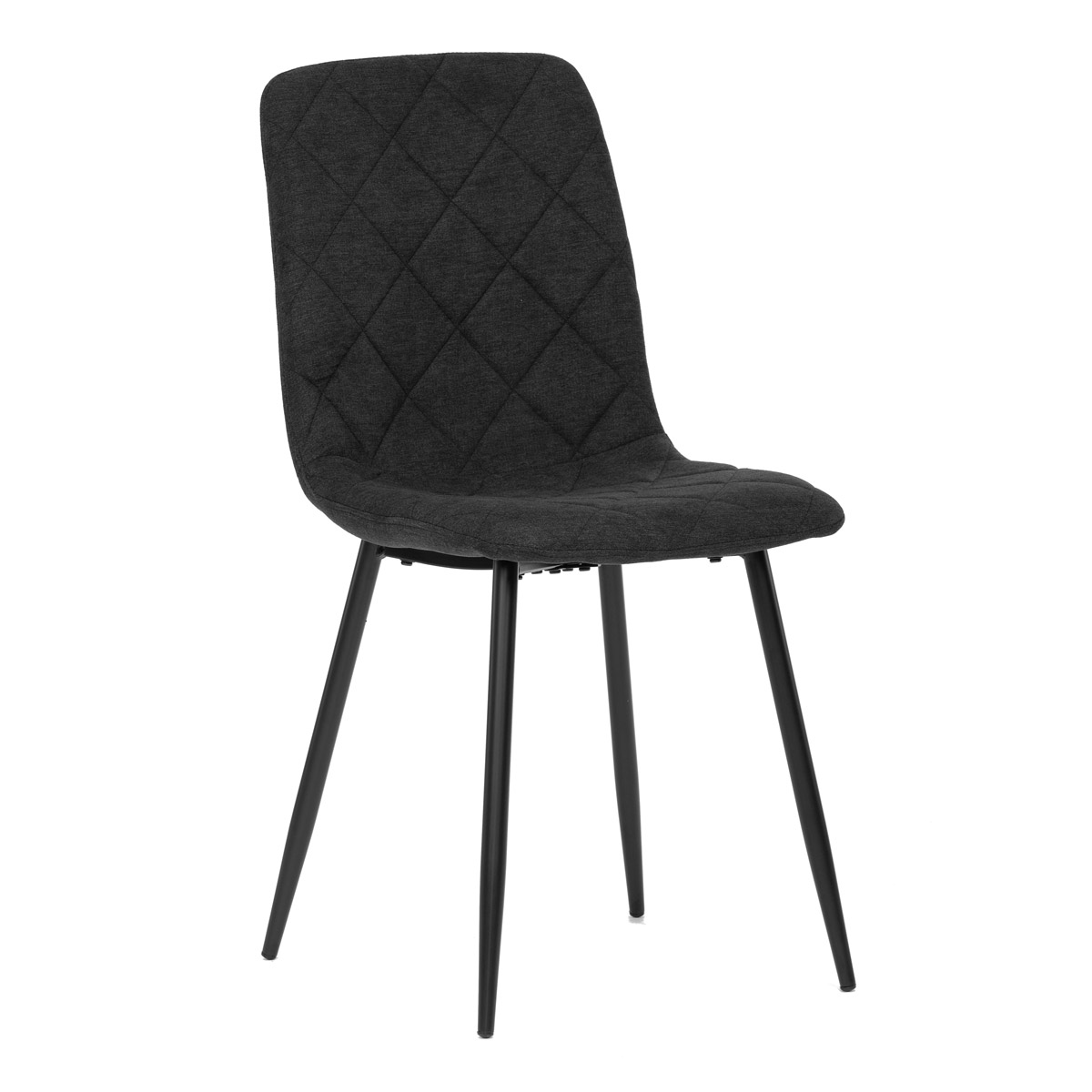 Moderná, štýlová a pohodlná – to sú hlavné atribúty tejto čiernej jedálenskej stoličky s látkovým poťahom a čiernymi kovovými nohami. Táto elegantná jedálenská stolička je ideálnou voľbou pre moderné interiéry. Maximálny komfort je dosiahnutý polstrovaním sedadla aj chrbtovej opierky. Čalúnenie z vysoko kvalitnej hladkej tkaniny zaistí skvelý komfort pri jedle alebo dlhých večeroch s priateľmi a rodinou. Vďaka nohám vyrobeným z kovu je zaistená zvýšená stabilita a odolnosť proti opotrebovaniu. Matná farba v kombinácii s hladkou látkou vytvára vkusný a moderný vzhľad. Nosnosť je 120 kg.