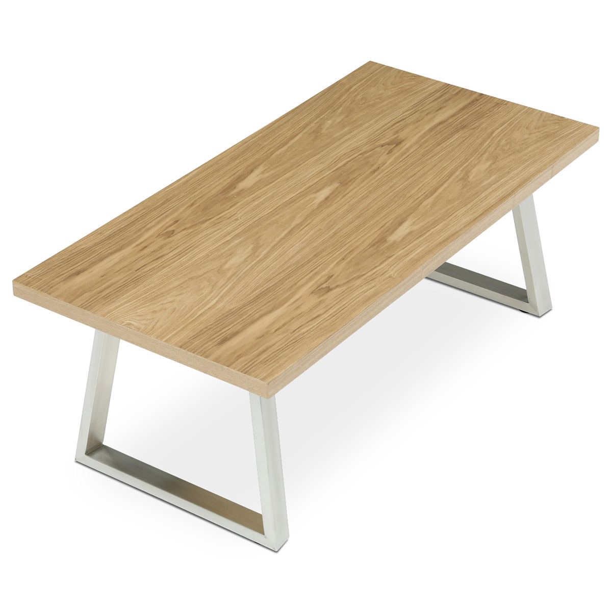 Konferenčný stôl značky Autronic v modernom designe, ktorý skvele zapadne do každého interiéru. Jeho doska je vyrobená z kvalitnej dyhy s dekorom duba, čo dodáva stolu elegantný a prírodný vzhľad. Nohy sú vyrobené z brúseného nerezu. Stolík je ideálny na každodenné posedenie v rodinnom kruhu alebo s priateľmi.