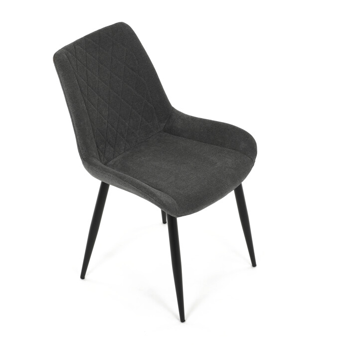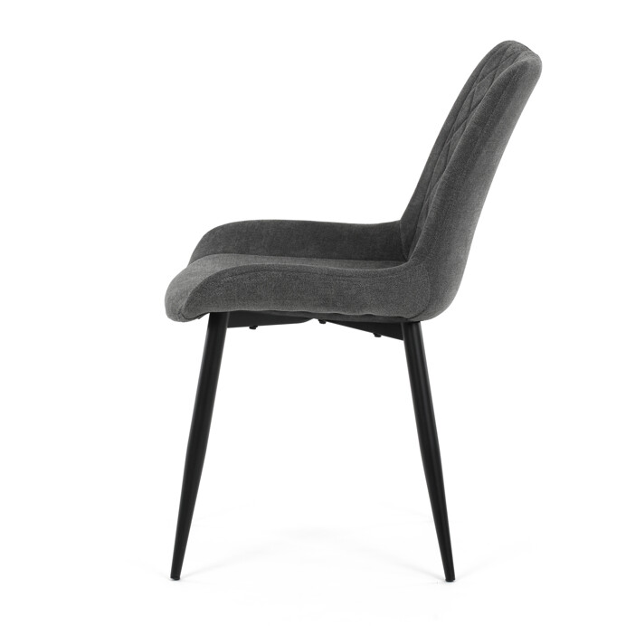 Jedálenská stolička s čalúnením v sivej látke ponúka pohodlné sedenie vďaka ergonomicky tvarovanému sedáku a operadlu s dizajnovým prešitím, ktoré zároveň dodáva moderný vzhľad. Pevná kovová podnož v čiernom prevedení zabezpečuje stabilitu a dlhú životnosť. Absencia podrúčok umožňuje jednoduché zasunutie stoličky pod stôl a šetrí miesto v jedálni. Stolička je vhodná na každodenné používanie v domácnostiach aj komerčných priestoroch. Jej jednoduchý, no štýlový dizajn sa ľahko kombinuje s rôznymi interiérovými štýlmi.
