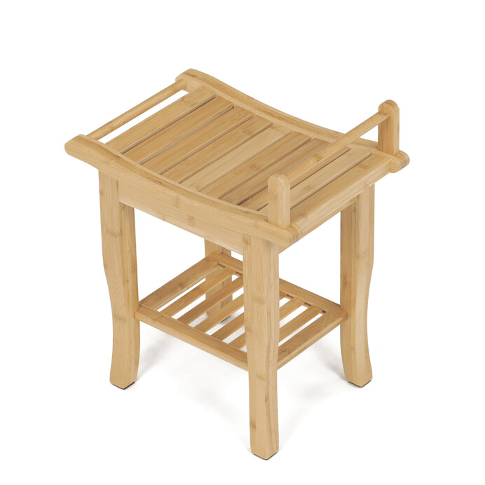 Stolička z masívneho bambusu v prírodnom odtieni ponúka pevné a stabilné prevedenie vhodné do rôznych interiérov. Sedák tvorí vodorovné lamely s miernym prehnutím pre pohodlnejšie sedenie, doplnený o dve praktické police pod sedákom na uloženie obuvi alebo iných drobností. Bambusový materiál je navrhnutý pre dlhú životnosť a jednoduchú údržbu, pričom jeho prírodná textúra prináša do priestoru príjemný vizuálny efekt. Nohy sú vybavené ochrannými klzákmi, ktoré zabraňujú poškodeniu podlahy. Rozmery a nosnosť zodpovedajú bežným požiadavkám na domáce použitie.