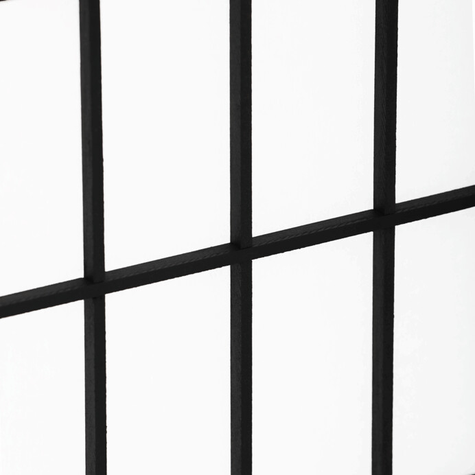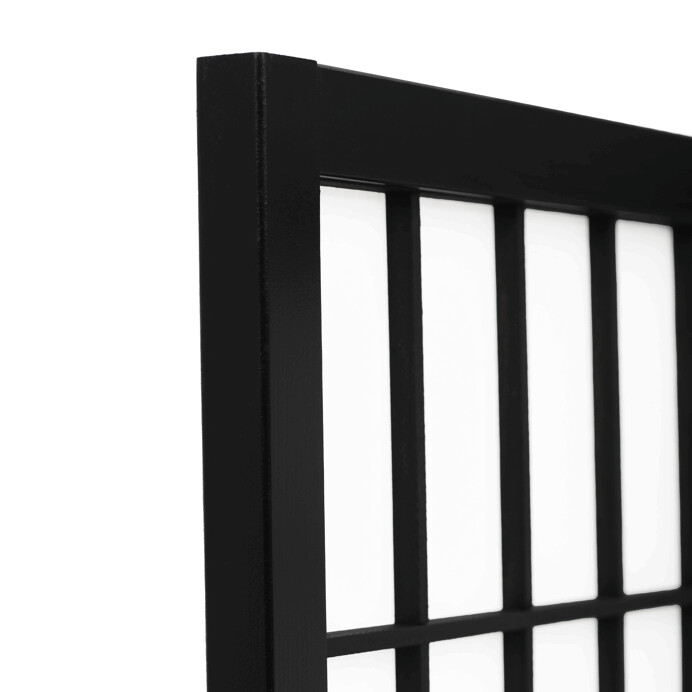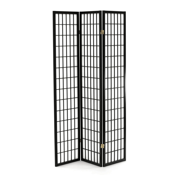 Trojdielny paraván je vyrobený z masívneho smrekového dreva s povrchovou úpravou v čiernom matnom laku, ktorý zabezpečuje kvalitné spracovanie a dlhú životnosť. Výplň tvorí biela netkaná textília, ktorá prepúšťa svetlo a zároveň poskytuje dostatočné súkromie. Vďaka trom otočným dielom umožňuje flexibilné nastavenie uhla a jednoduché prispôsobenie priestoru. Paraván je vhodný na oddelenie miestností, vytvorenie súkromných zón alebo ako dekoratívny prvok interiéru. Jeho rozmery a pevná konštrukcia zaručujú stabilitu pri použití v rôznych typoch priestorov.