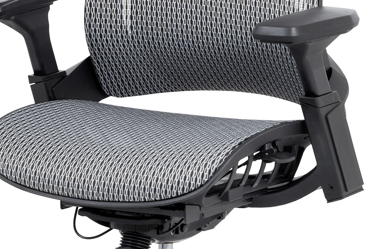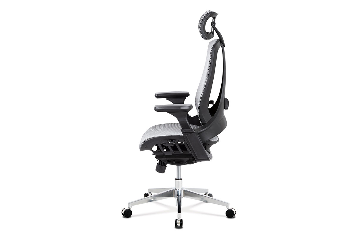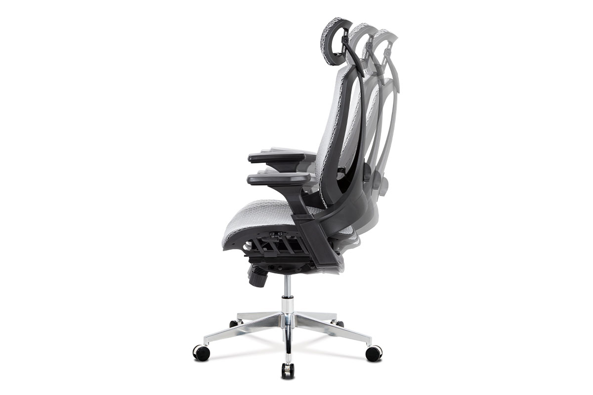 Kancelárska stolička očalúnenie sieťovinou MESH v šedej farbe. Táto stolička je jedinečná svojím lankovým mechanizmom, ktorý zaisťuje vysoký komfort pri užívaní, a to vďaka možnosti nastavenia sedadla (dopredu - dozadu), možnosti aretácie operadla v akejkoľvek polohe a nastavenie výšky. Nastaviteľné podrúčky, bedrová opierka s možnosťou nastavenia podľa užívateľa a opierka hlavy sú tiež veľkou výhodou.