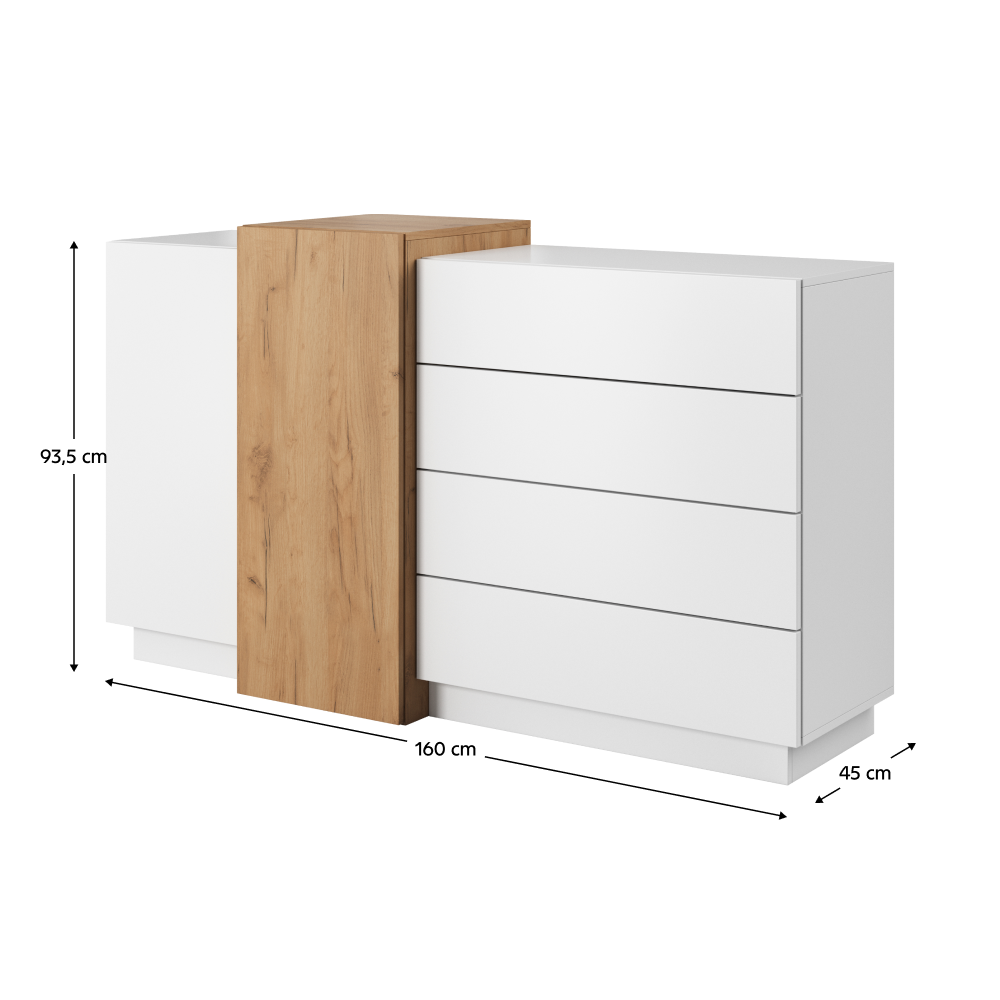 Výška užšej skrinky a šuplíkovej časti: 88,5 cm
