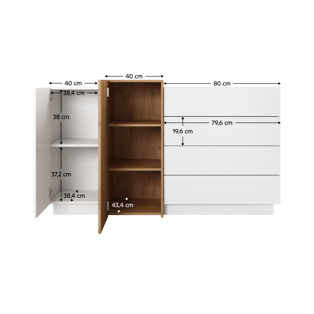 Hĺbka užšej skrinky a šuplíkovej časti: 40,4 cm