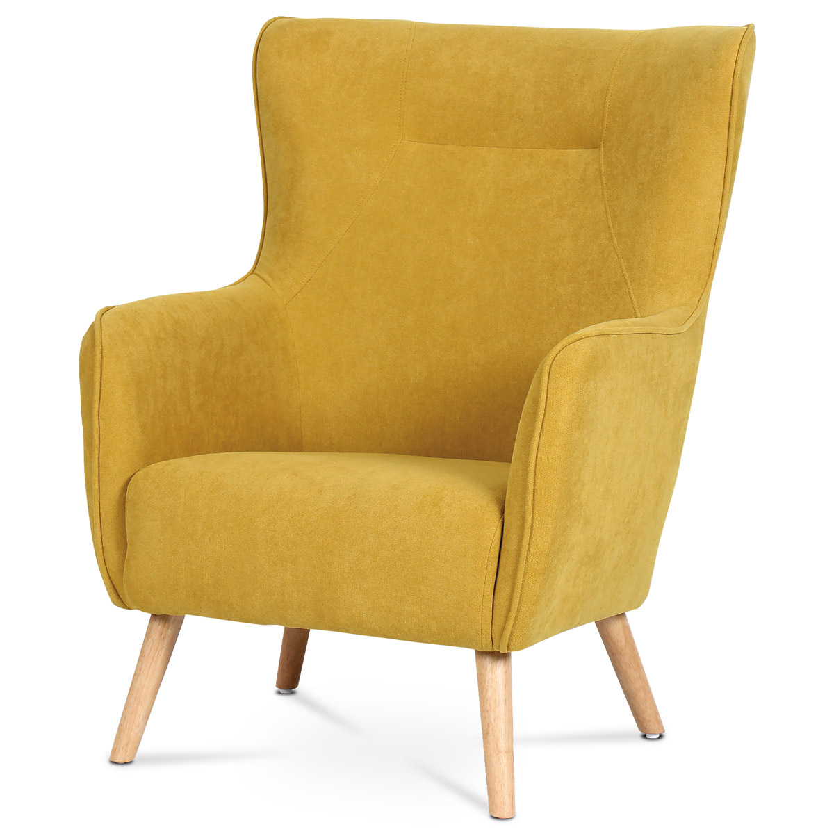 Kreslo „ušiak“, poťah žltá látka, noh...