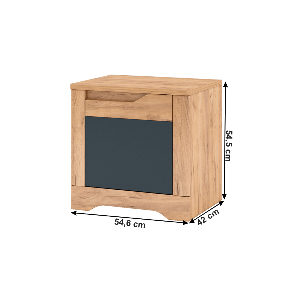 Materiál: DTD laminovaná/MDF fóliovaná Farba: dub craft zlatý/grafit sivá Rozmery (ŠxHxV): 54,6x42x54,5 cm Hrúbka materiálu korpus: 16 mm Hrúbka materiálu vrchná doska: 22 mm Jedna skrinka Pravé prevedenie Dodávané v demonte