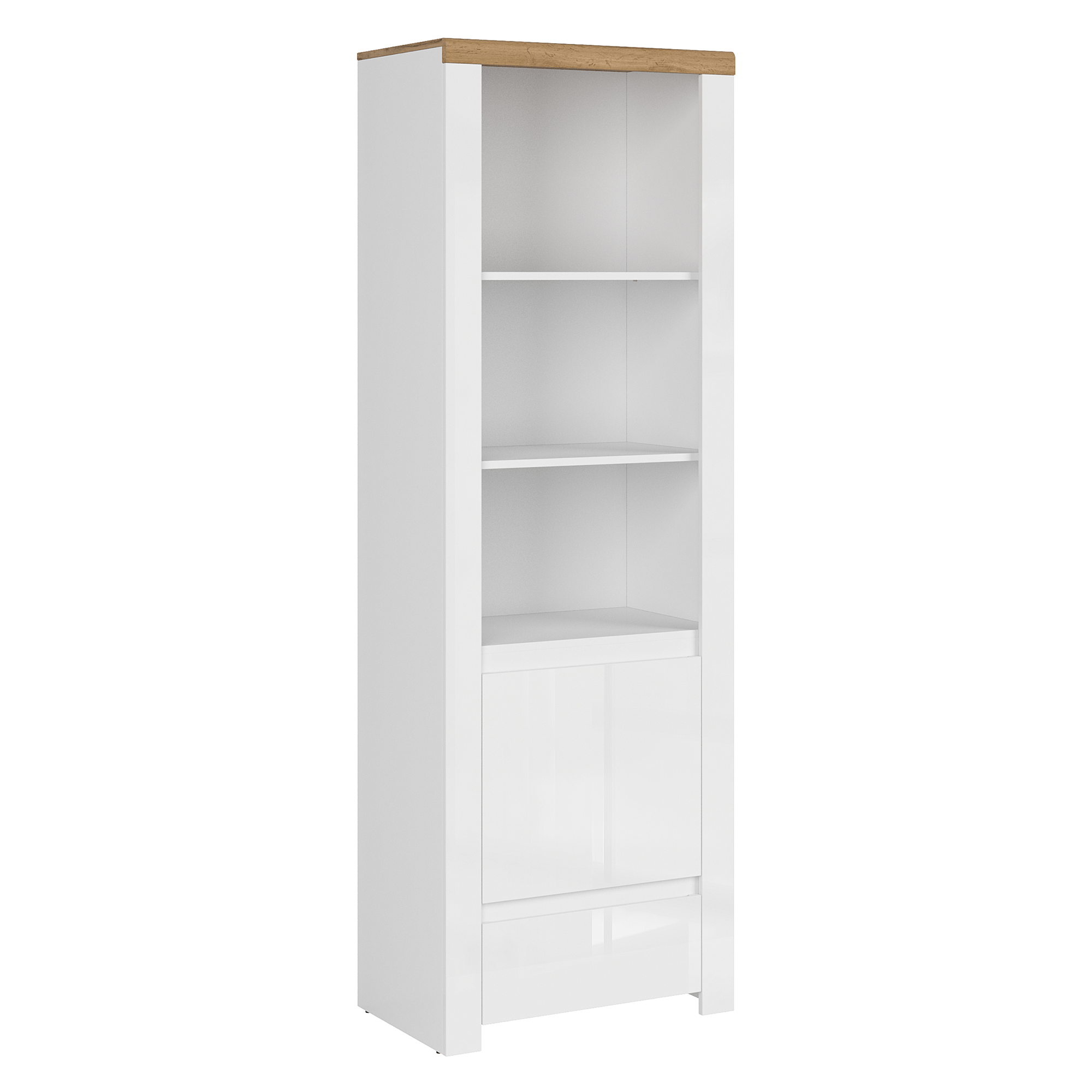 Obsahuje otvorené police, otváraciu skrinku a zásuvku