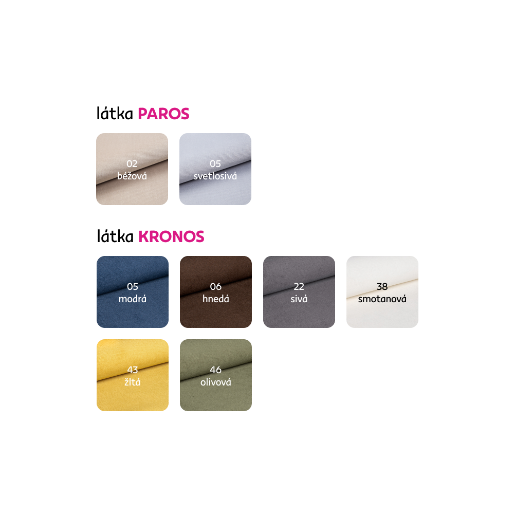 Ponúkame vám možnosť vybrať si zo 6 farebných prevedení látky Kronos alebo z 2 farebných prevedení látky Paros za cenu 985 Eur. Pri individuálnej objednávke je potrebné zaplatiť 20% zálohu z danej sumy. Po uhradení zálohy bude Vaša požiadavka zadaná do výroby. Dodacia lehota 6-8 týždňov.
