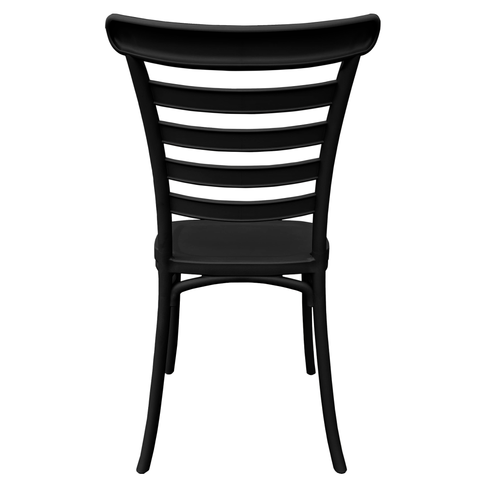 Materiál: plast Farba: čierna Rozmery (ŠxHxV): 44x44x84 cm Výška sedu: 45 cm Hĺbka sedu: 38 cm Šírka sedenia: 38 cm Výška chrbta: 40 cm Šírka chrbta: 41 cm Nosnosť: 100 kg Hmotnosť: 3,25 kg Stohovateľná Vhodná do interiéru aj exteriéru Dodávané v monte