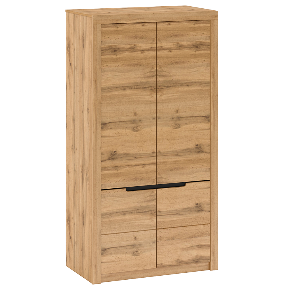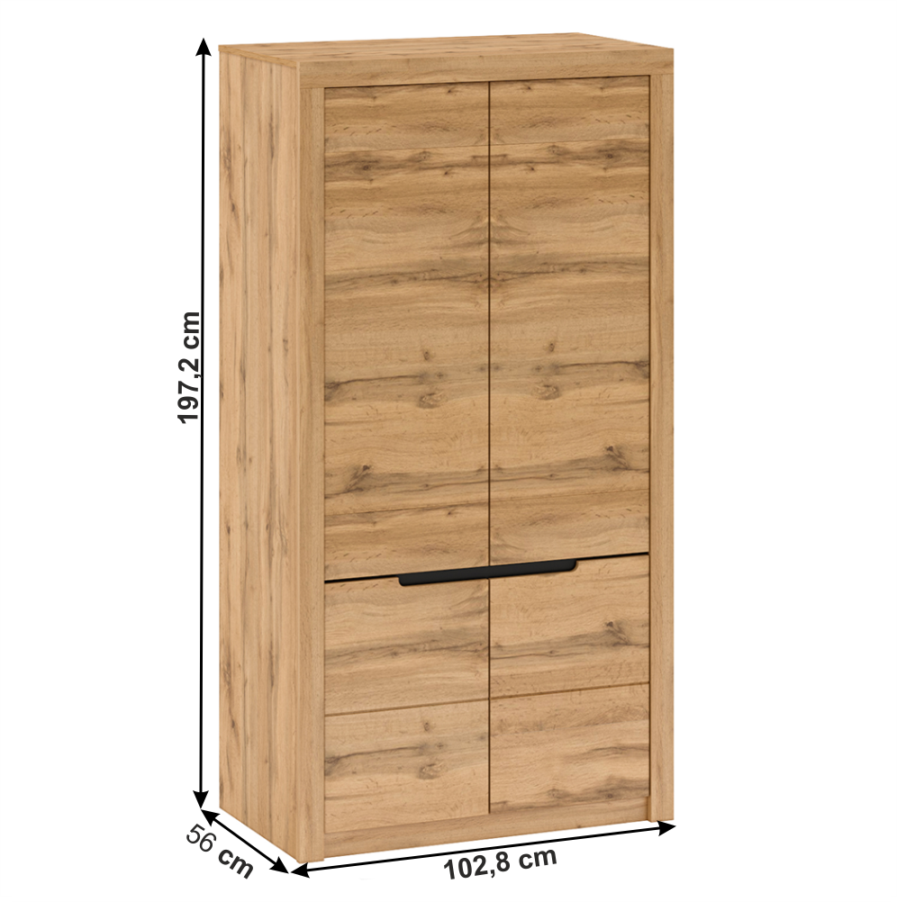 Materiál: DTD laminovaná/ MDF fóliovaná Farba: dub wotan Rozmery (ŠxHxV): 102,8x56x197,2 cm Hrúbka materiálu korpus: 16 mm Štvordverová Vešiaková S vešiakovou tyčou S policou Dodávané v demonte.