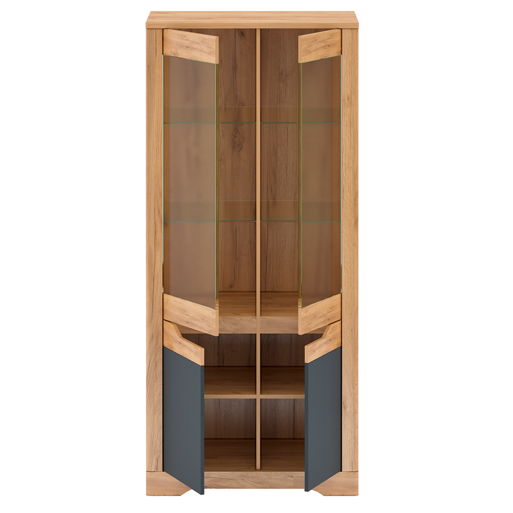 Vitrína H, dub craft zlatý/grafit sivá, FIDEL