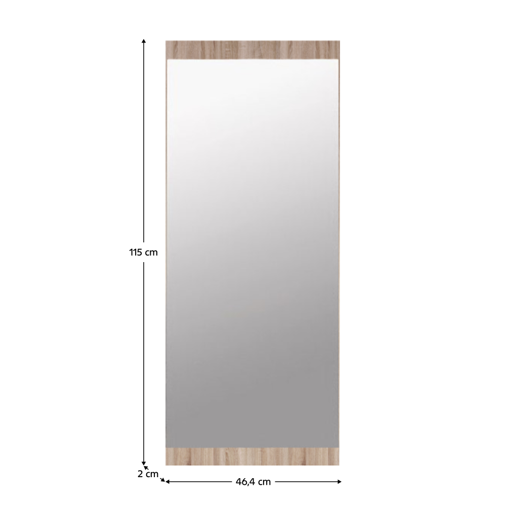 Materiál: DTD laminovaná/sklo Farba: dub sonoma Rozmery (ŠxHxV): 46,4x2x115 cm Hrúbka materiálu: 1,6 cm Odporúčame pripevniť k stene Dodávané v monte