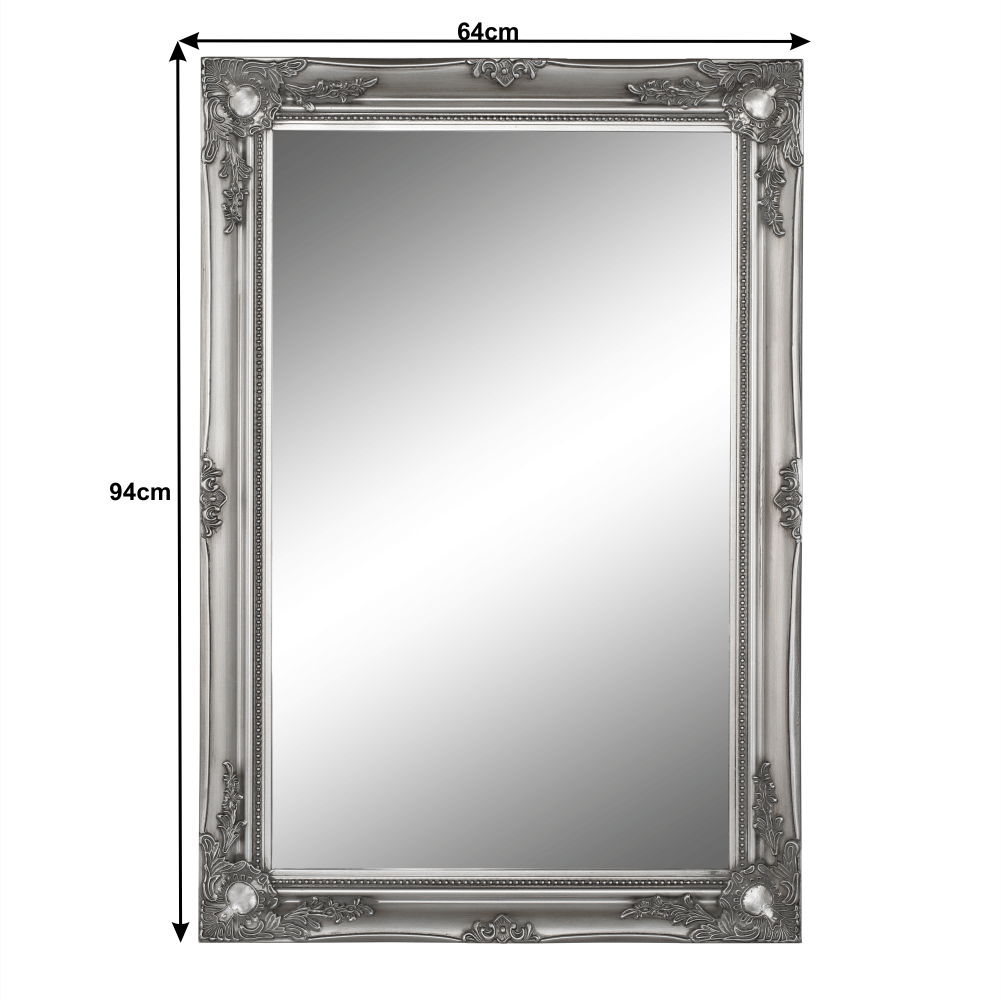 Zrkadlo MALKIA TYP 7 s dreveným rámom striebornej farby. Rozmery (ŠxV): 64x94 cm